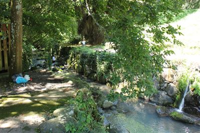 夏場は、冷たい湧き水の水源プールが人気で、多くの人でにぎわいます。
